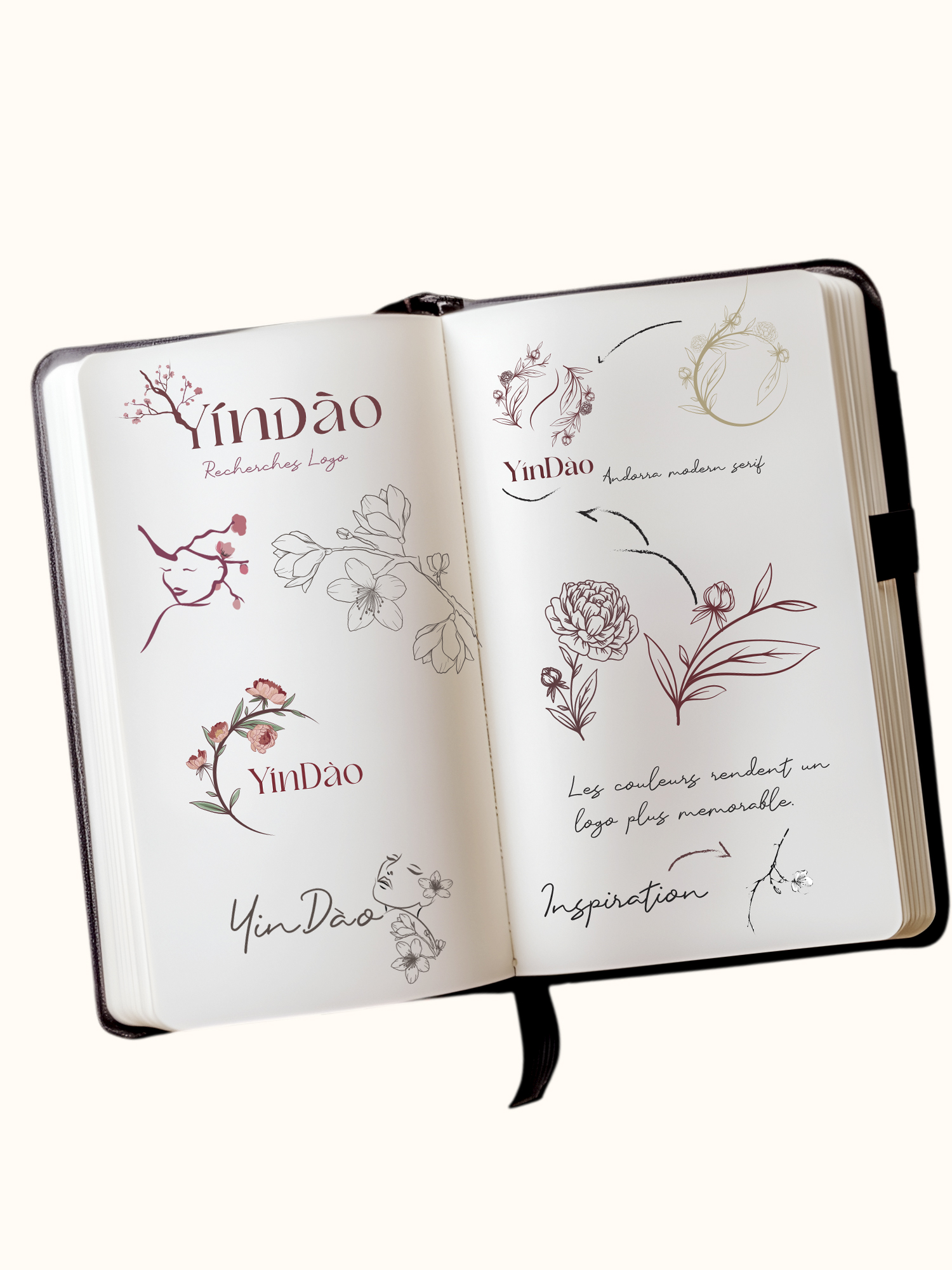 J’ai été en charge de la création du logo et du site web. Ma cliente tenait particulièrement à intégrer un symbole du Yin et du Yang, ainsi que de nombreuses fleurs pour évoquer la douceur et la féminité de sa pratique.