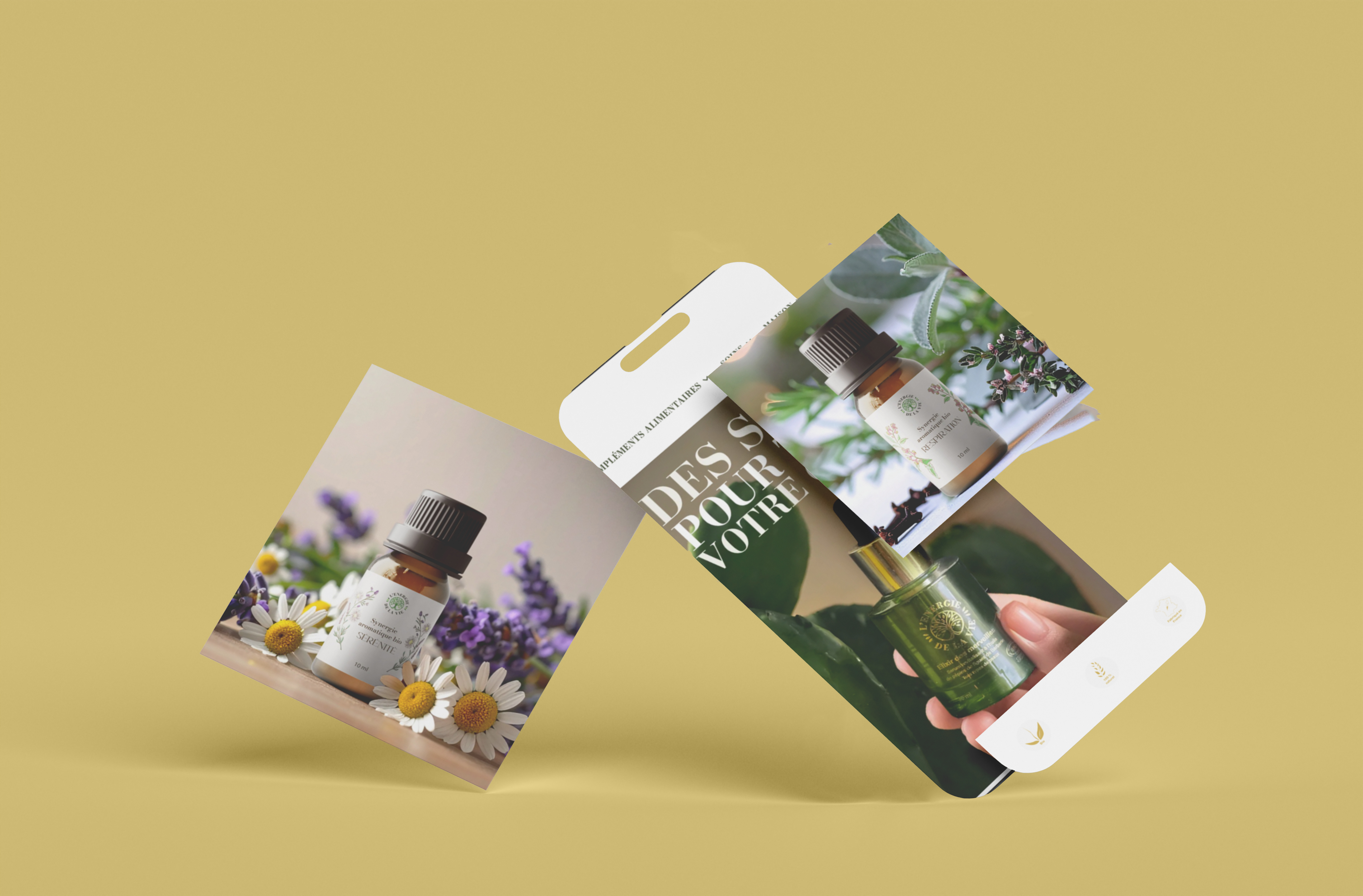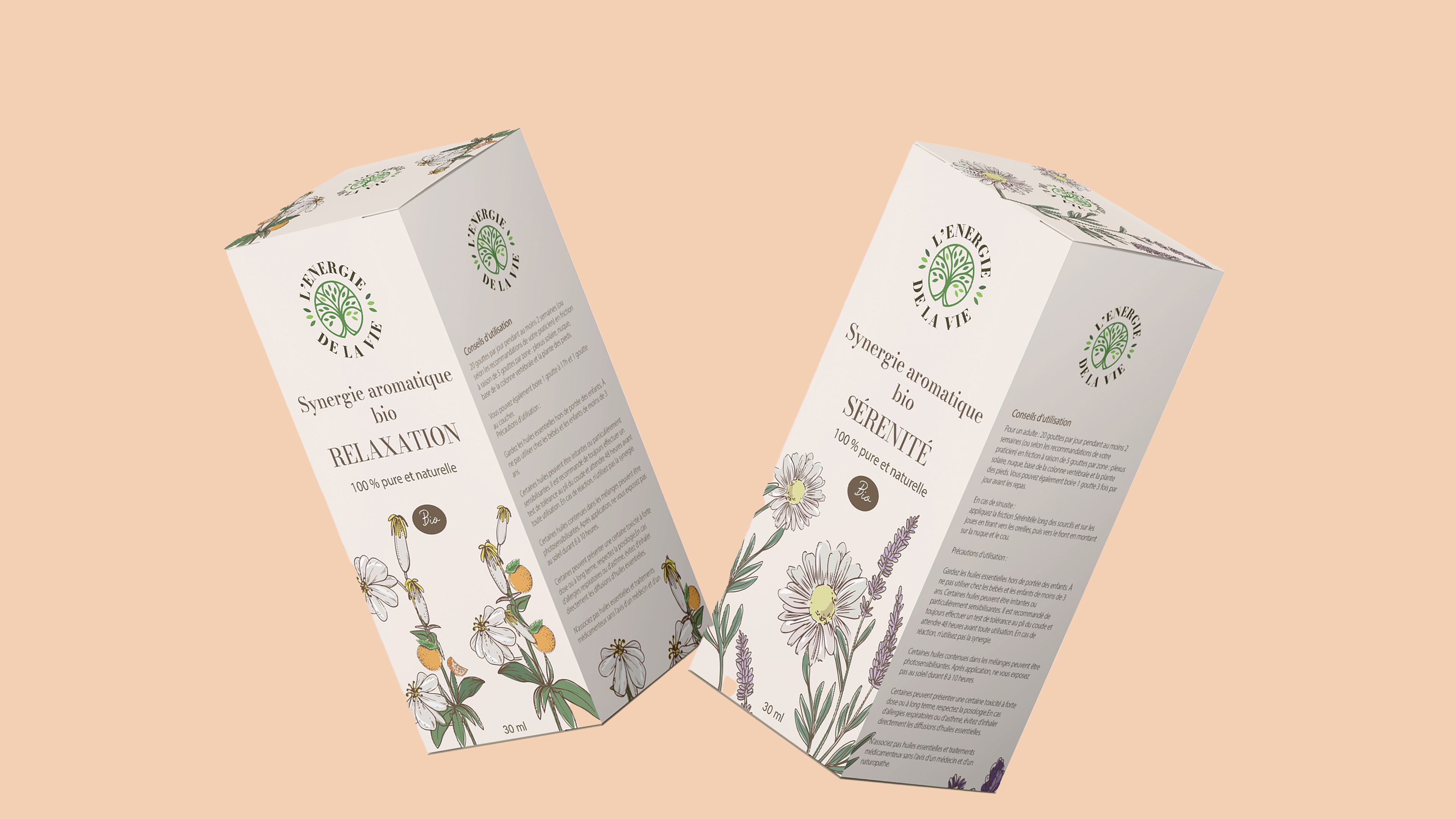 J’ai travaillé en tant que graphiste pour L’Énergie de la Vie, une marque lyonnaise de produits naturels et d’aromathérapie fondée par une naturopathe. J’y ai conçu les packagings des huiles essentielles et des synergies, ainsi que les étiquettes apposées sur les flacons. En parallèle, j’ai contribué à la refonte de l’e-commerce, en repensant entièrement l’expérience utilisateur (UX) et en retouchant les visuels produits afin d’harmoniser l’identité de marque et d’améliorer la cohérence visuelle du site.