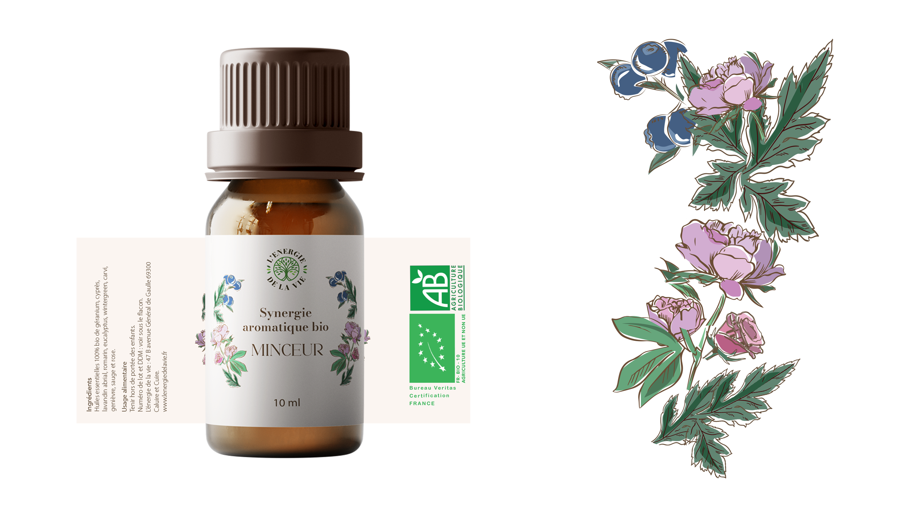 L’Énergie de la Vie est une marque lyonnaise de produits naturels et d’aromathérapie fondée par une naturopath. J’y ai conçu les packaging des huiles essentielles et des synergies, ainsi que les étiquettes apposées sur les flacons.