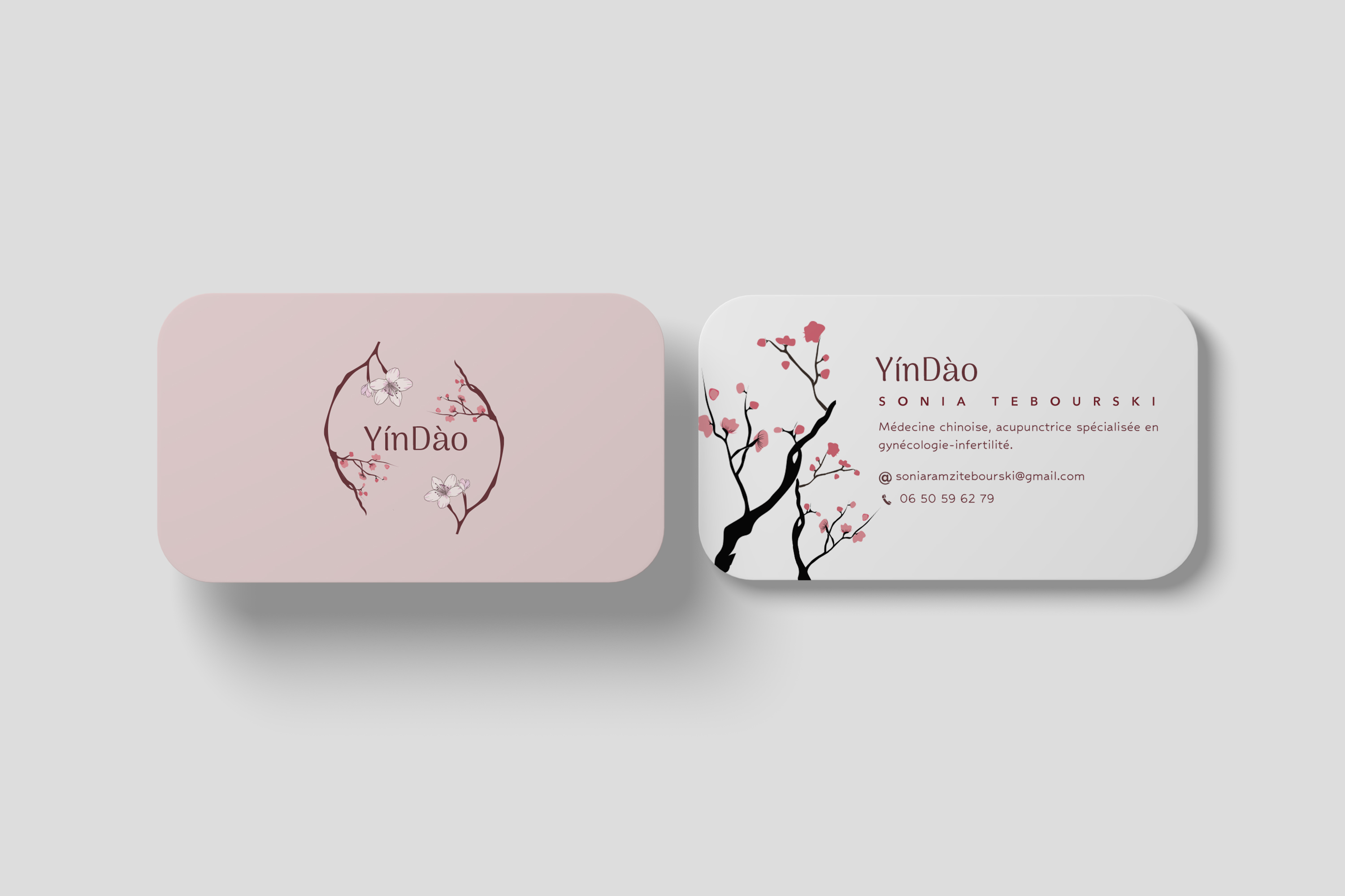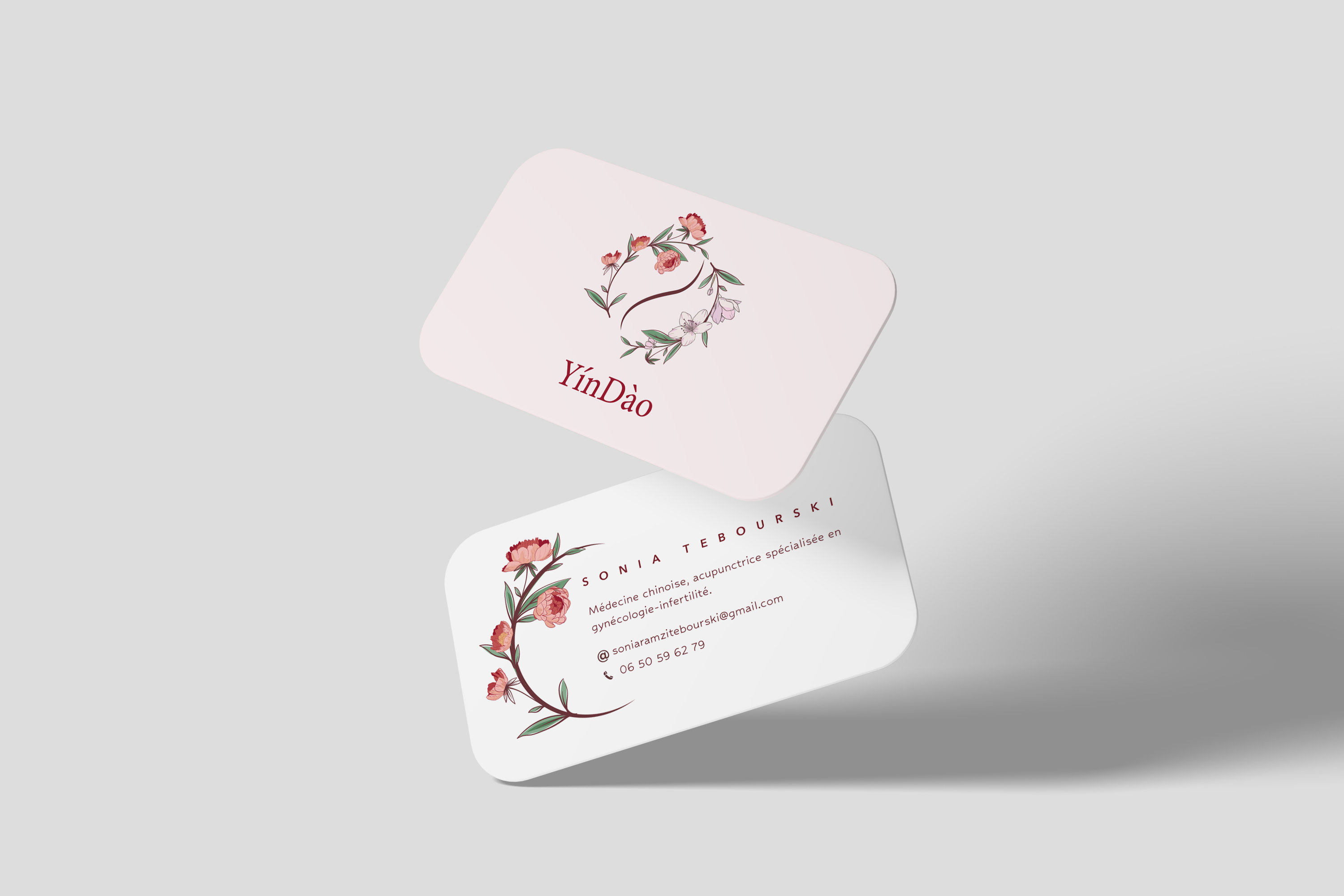 J’ai été en charge de la création du logo et du site web. Ma cliente tenait particulièrement à intégrer un symbole du Yin et du Yang, ainsi que de nombreuses fleurs pour évoquer la douceur et la féminité de sa pratique.
